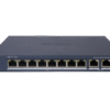 This smart switch also includes 2 Gigabit uplink ports, enabling reliable backhaul connections to routers, core switches, or NVRs. It offers intelligent PoE management, short-circuit protection, and in some models, extended PoE transmission up to 250 meters. The switch is housed in a durable metal enclosure with a fanless or low-noise design, ideal for noise-sensitive environments.